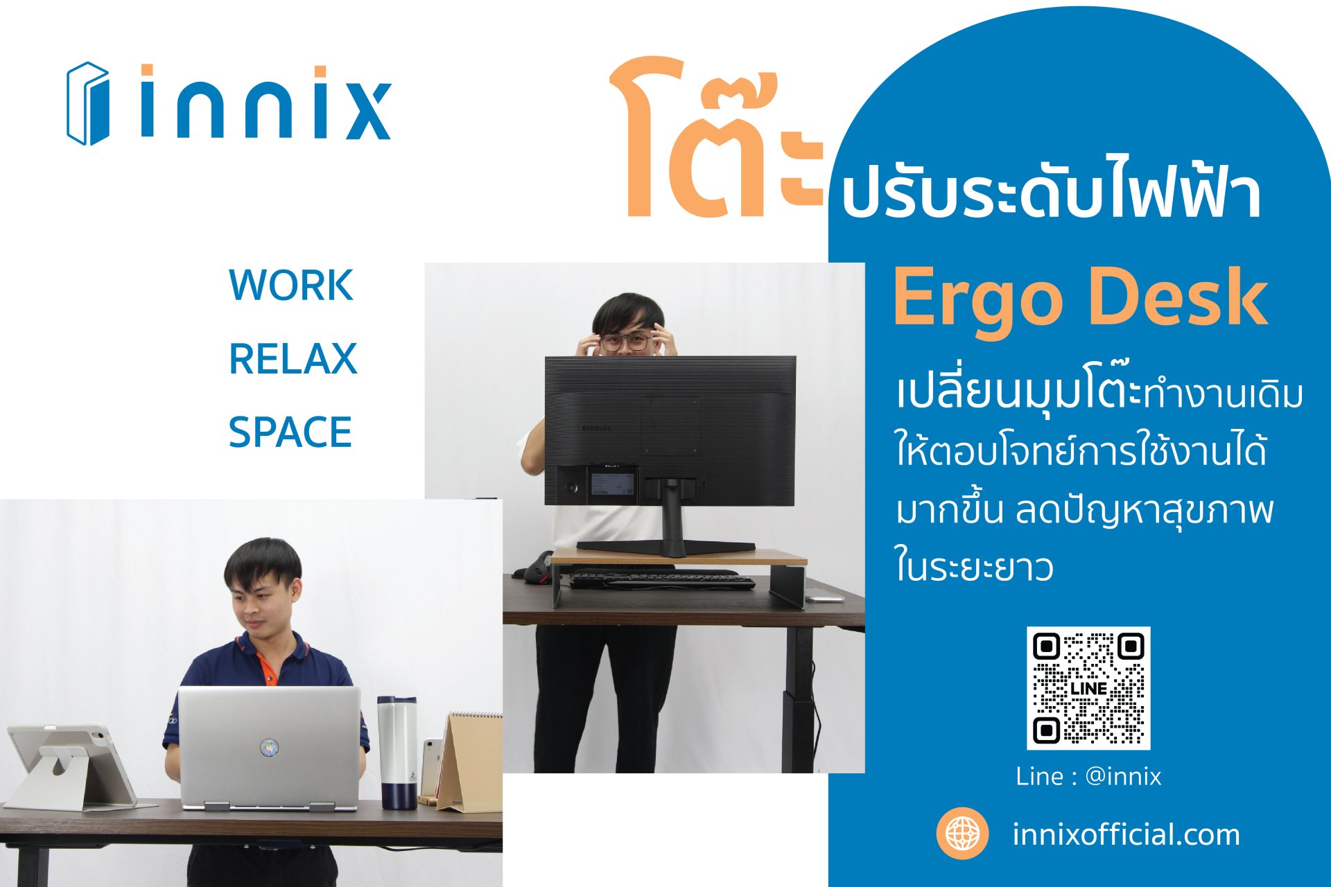โต๊ะปรับระดับไฟฟ้า Ergo Desk ปรับสูง-ต่ำได้ ช่วยดูแลสุขภาพจาก office syndrome ในระยะยาว จาก INNIX